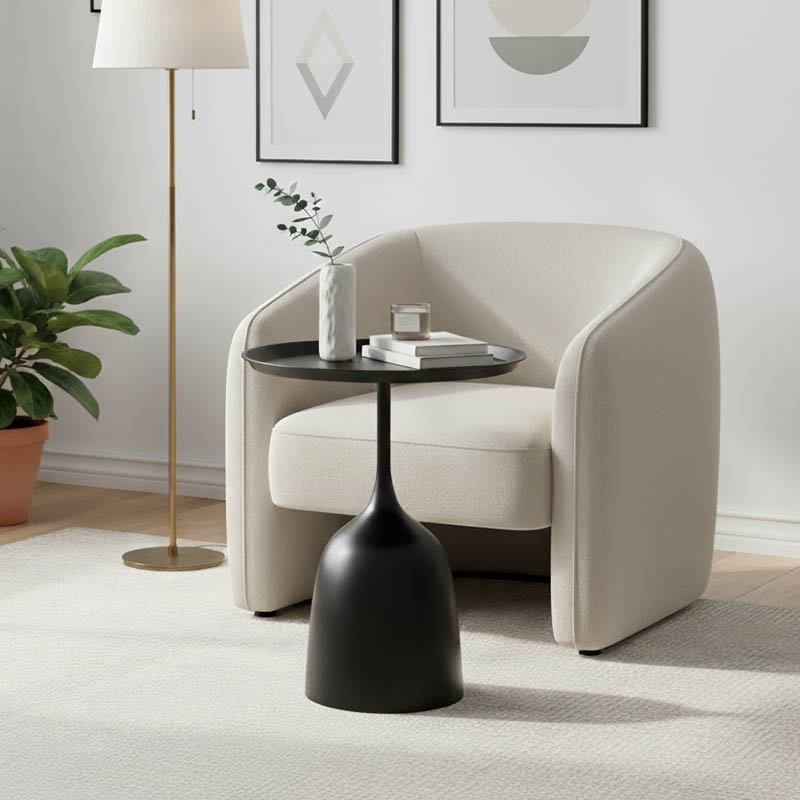 Βοηθητικό τραπέζι Agrile Inart μαύρο μέταλλο Φ50×60εκ