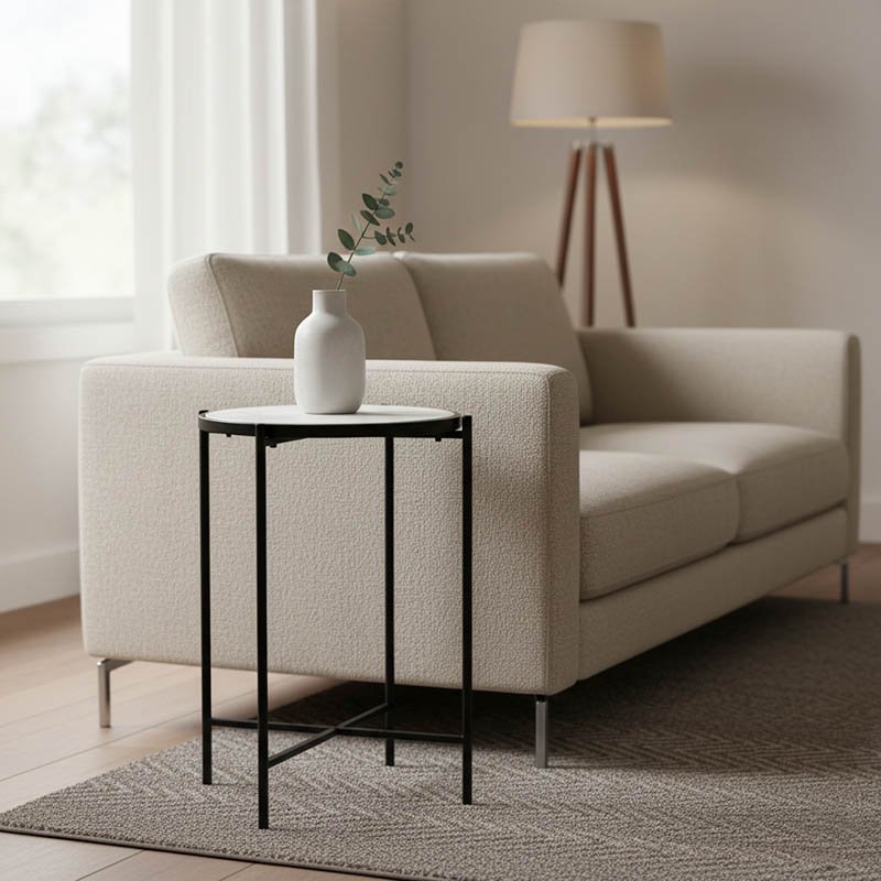 Βοηθητικό τραπεζάκι σαλονιού Luxere Inart μαύρο μέταλλο-λευκό μαρμάρου Φ40×65.5εκ