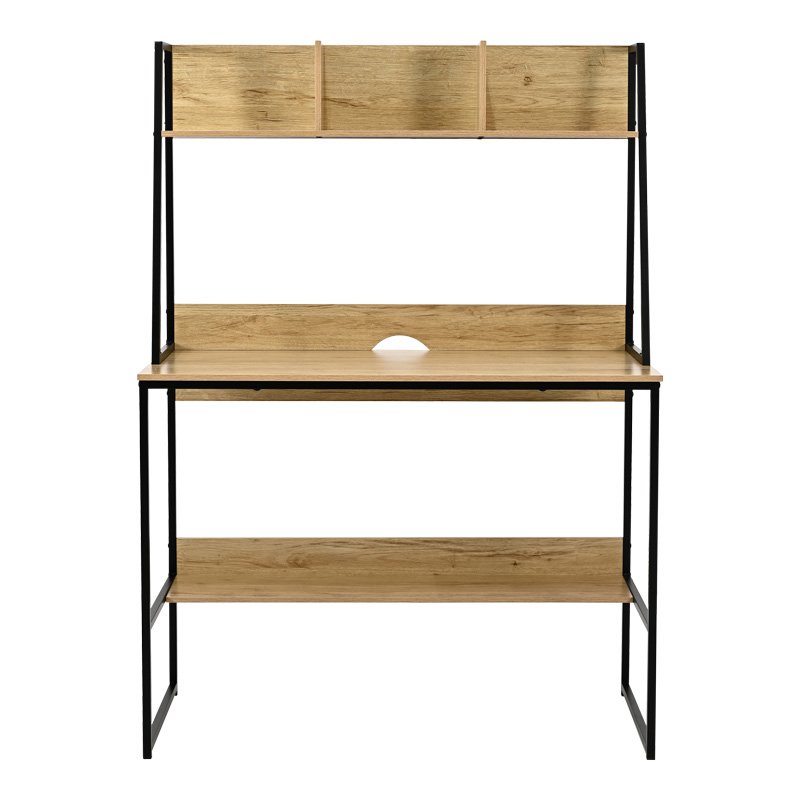 Γραφείο εργασίας Herbey pakoworld με ράφια σε oak απόχρωση με πόδι μαύρο μέταλλο 100x48x139εκ