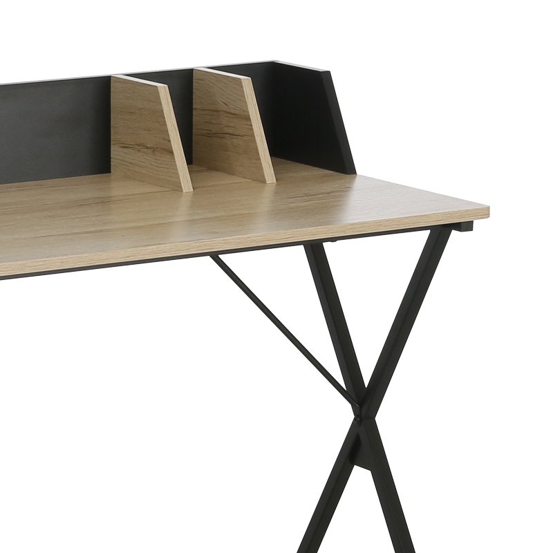 Γραφείο εργασίας Zervan pakoworld μελαμίνη σε φυσική-μαύρη απόχρωση 90x50x85εκ
