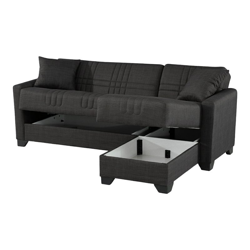 Γωνιακός καναπές-κρεβάτι αναστρέψιμος Stashio pakoworld ύφασμα ανθρακί 202x143x84εκ