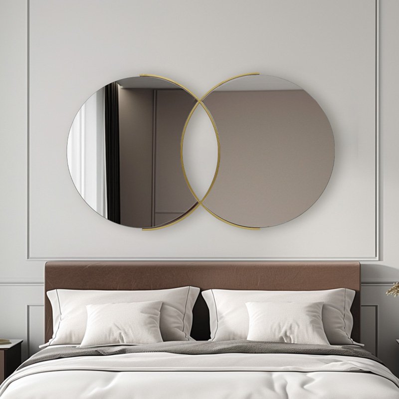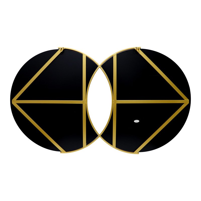 Ο εντυπωσιακός αυτός καθρέφτης τοίχου αποτελεί ένα μοναδικό διακοσμητικό στοιχείο που θα αναβαθμίσει κάθε χώρο. Με τον πρωτότυπο σχεδιασμό του, που συνδυάζει δύο κυκλικούς καθρέφτες με ένα κομψό χρυσό πλαίσιο, προσφέρει μια σύγχρονη και πολυτελή αίσθηση.