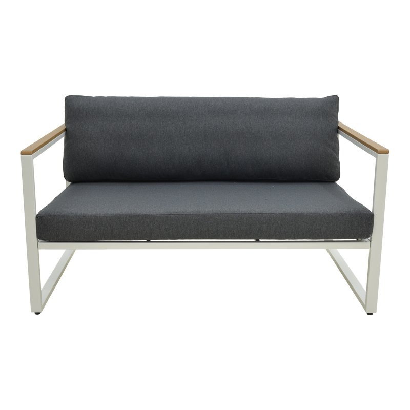 Αναβαθμίστε τον εξωτερικό ή εσωτερικό σας χώρο με τον 2θέσιο καναπέ Aurelio. Με στιβαρό ατσάλινο σκελετό και κομψές, μοντέρνες γραμμές, συνδυάζει στυλ, άνεση και μακροχρόνια αντοχή. Τα μπράτσα με επένδυση plywood προσθέτουν μια φυσική πινελιά, ενώ τα πλούσια μαξιλάρια εξασφαλίζουν μια premium εμπειρία καθίσματος.