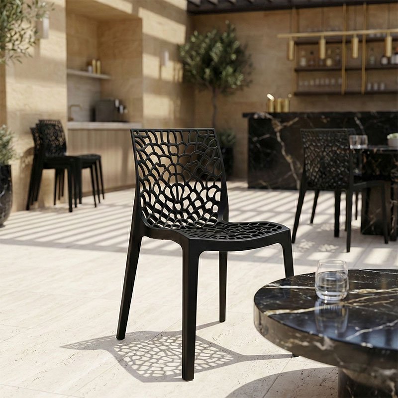 Καρέκλα στοιβαζόμενη Hush pakoworld pp σε μαύρη απόχρωση 41x53x80.5εκ
