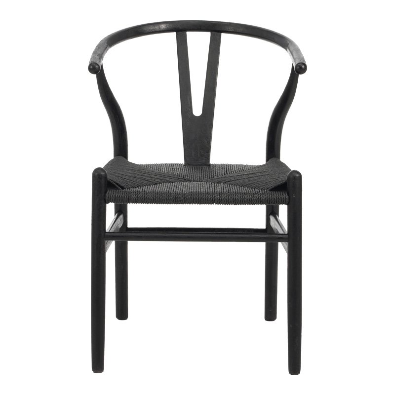 Καρέκλα Wishbone pakoworld rubberwood-σχοινί σε μαύρη απόχρωση 53.5x57x74εκ