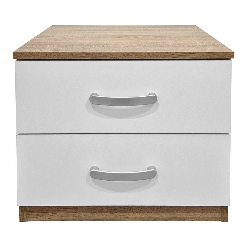 Το κομοδίνο Athos αποτελεί μια κομψή και λειτουργική προσθήκη σε κάθε υπνοδωμάτιο. Διαθέτει δύο ευρύχωρα συρτάρια που προσφέρουν άφθονο αποθηκευτικό χώρο, βοηθώντας στη διατήρηση της τάξης και της οργάνωσης. Ο σχεδιασμός του συνδυάζει αρμονικά την αντοχή με τον κλασσικό σχεδιασμό και οι λιτές, μεταλλικές λαβές ολοκληρώνουν την εμφάνιση, προσδίδοντας μια νότα σύγχρονης κομψότητας.
