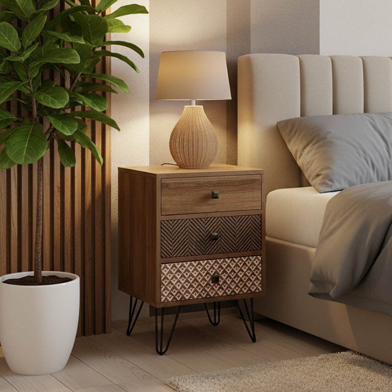Η κομψότητα, η ποιότητα και το εντυπωσιακό design είναι το στυλ σου; Και έχεις βαρεθεί τα ίδια και τα ίδια; Αν ναι, τότε το κομοδίνο Boho είναι για εσένα. Με μοντέρνο σχεδιασμό, ανθεκτικά υλικά και τρία συρτάρια για την αποθήκευση των αγαπημένων σου αξεσουάρ. Μία ιδανική πρόταση διακόσμησης για την αισθητική ανανέωση του χώρου σου.