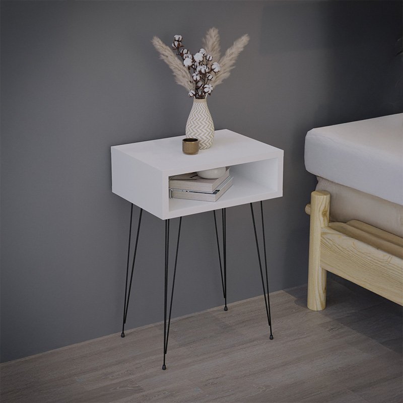 Το κομψό και μοντέρνο κομοδίνο Naida προσφέρει έναν τέλειο συνδυασμό στυλ και λειτουργικότητας για τη σύγχρονη κρεβατοκάμαρα. Οι καθαρές γραμμές και ο μινιμαλ σχεδιασμός του τονίζονται από κομψά, λεπτά μαύρα μεταλλικά πόδια, προσδίδοντας μια πινελιά βιομηχανικής κομψότητας.