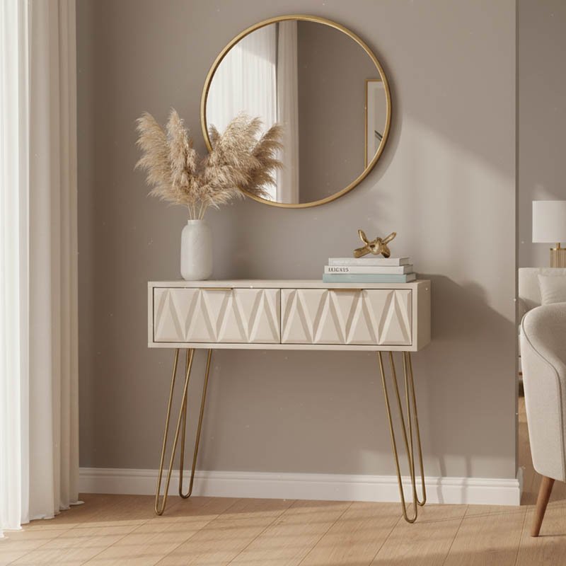 Κονσόλα Isla pakoworld χρώμα λευκό painting-χρυσό 80x39x74εκ