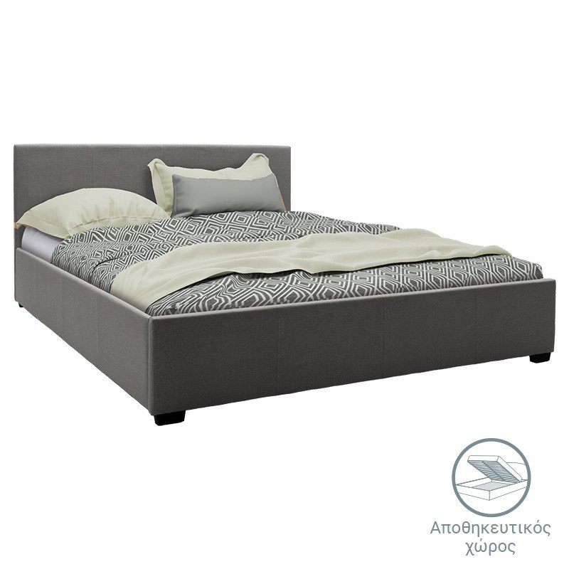 Κρεβάτι διπλό Norse pakoworld ύφασμα ανθρακί με αποθηκευτικό χώρο 160×200εκ