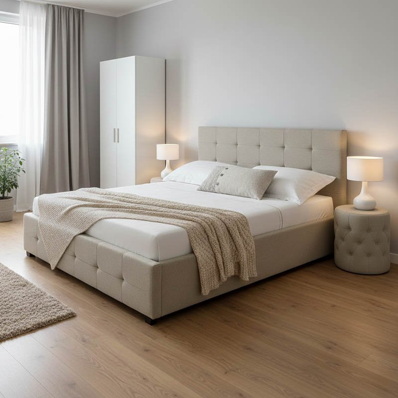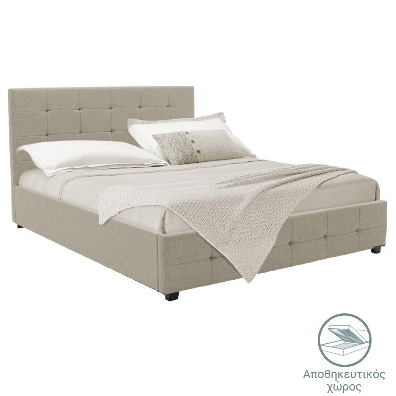 Κρεβάτι Roi pakoworld διπλό με αποθηκευτικό χώρο ύφασμα εκρού 160×200εκ
