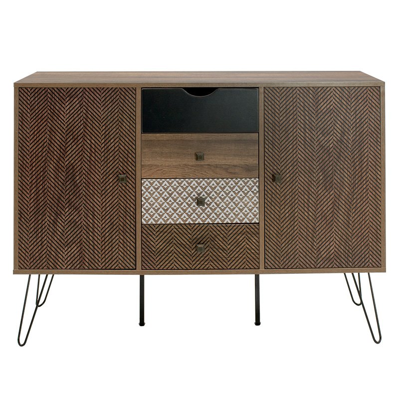 Μπουφές Boho με τέσσερα συρτάρια καρυδί μεταλλικά πόδια 122×39,5×86εκ