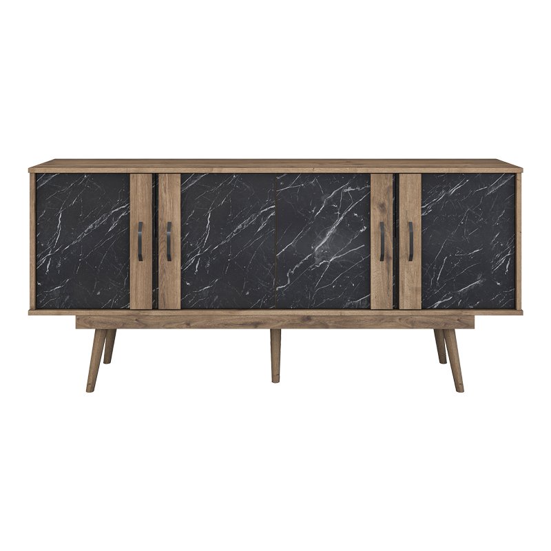 Μπουφές Suckie I pakoworld καρυδί με μαύρο μαρμάρου μελαμίνης-καρυδί pp πόδι 180x45x82.6εκ