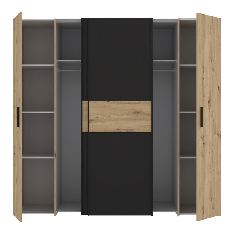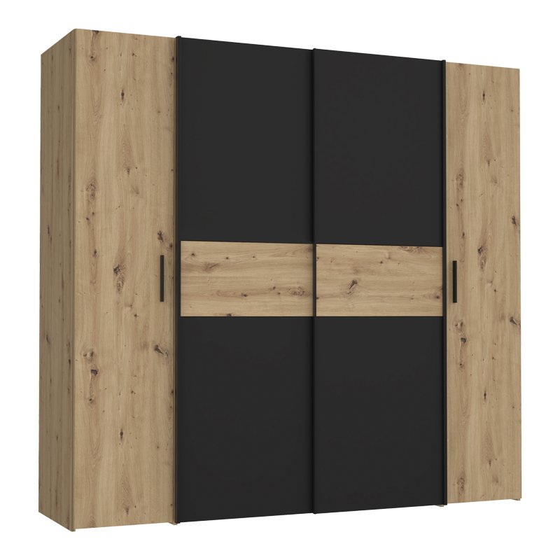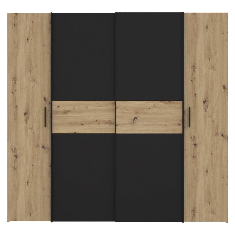 Ντουλάπα ρούχων Bekerk pakoworld τετράφυλλη μαύρο-oak μελαμίνης 200×61.5×190.5εκ