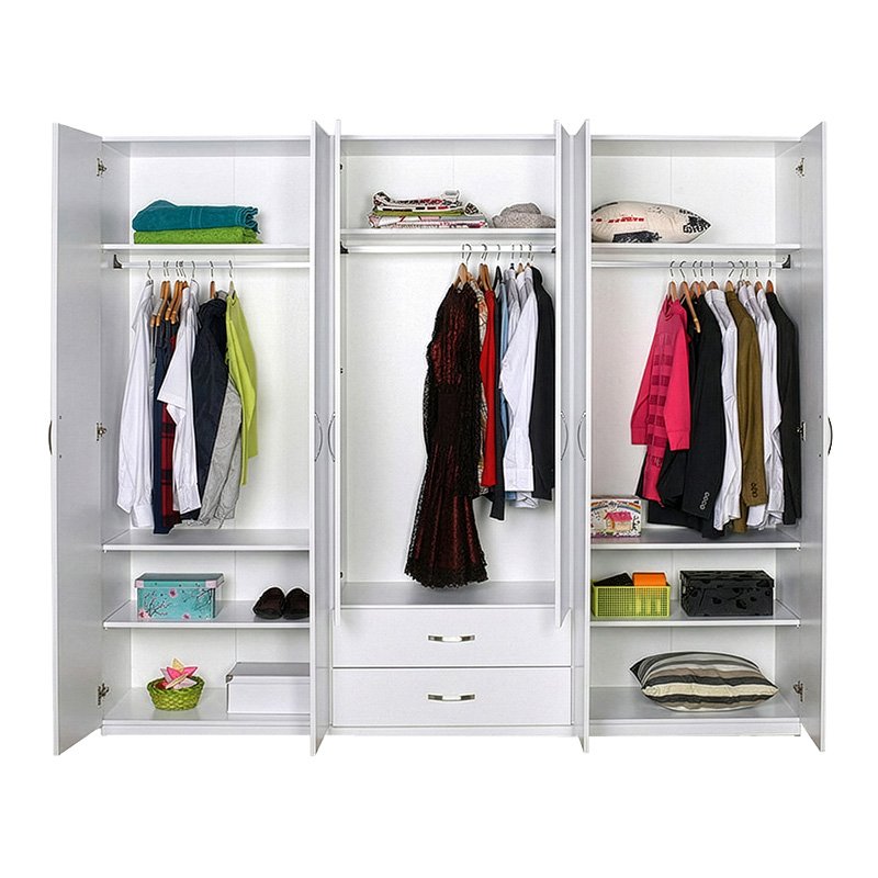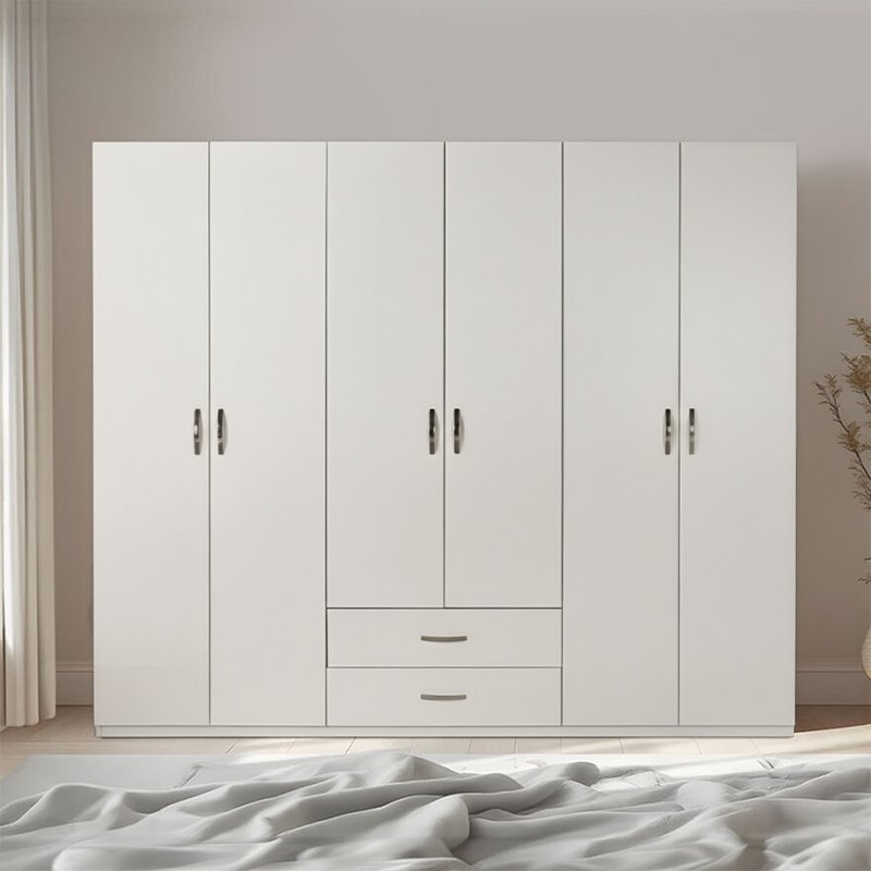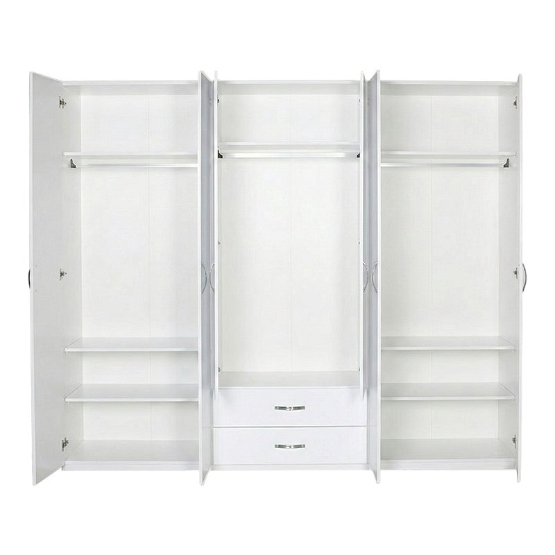 Ντουλάπα ρούχων Dormie pakoworld εξάφυλλη με συρτάρια σε λευκή απόχρωση 206x52x213εκ