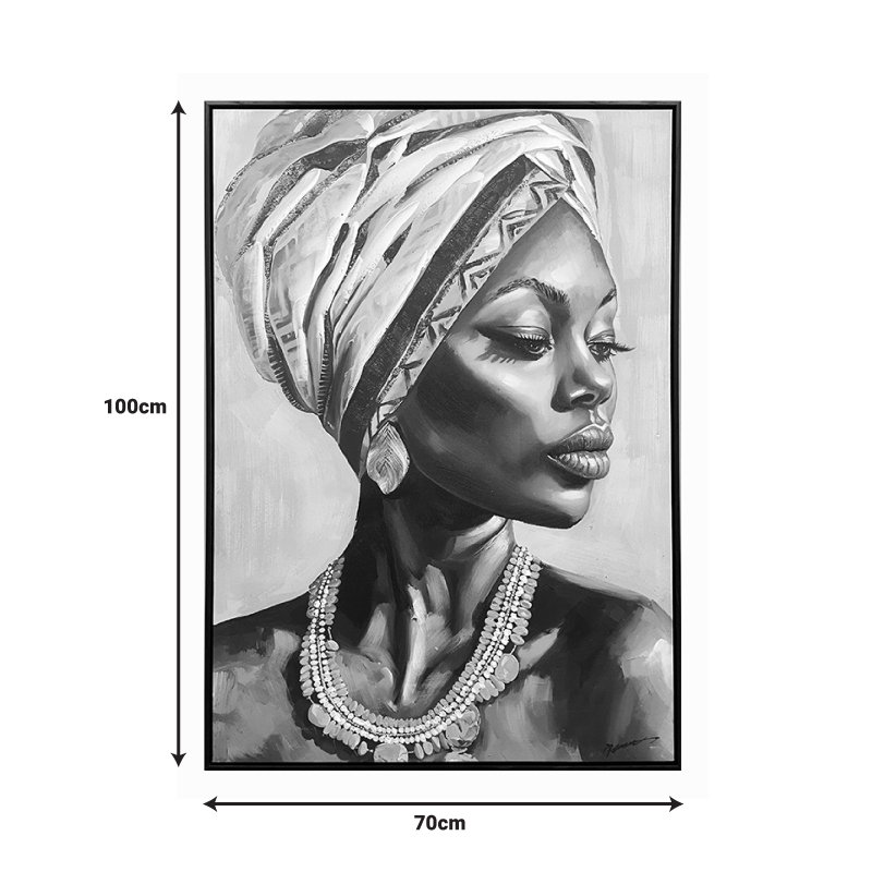 Μεταμορφώστε τον χώρο σας με τον πίνακα λαδιού σε καμβά Zaira, μια εξαιρετική απεικόνιση της γυναικείας ομορφιάς. Αυτό το έργο τέχνης συνδυάζει έντονα χρώματα και λεπτές πινελιές, αποτυπώνοντας τις όψης της ανθρώπινης έκφρασης. Ιδανικό για να προσθέσετε μια πινελιά κομψότητας στο σπίτι ή το γραφείο σας.