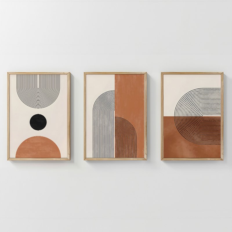 Εισάγετε στον χώρο σας τη δυναμική ισορροπία της αφηρημένης τέχνης με μία minimal, γήινη παλέτα που αποπνέει ζεστασιά. Το τρίπτυχο Ourva I αποτελείται από τρία ξεχωριστά, αλληλεπιδρώντα τεμάχια. Κάθε πίνακας παρουσιάζει αφηρημένα γεωμετρικά στοιχεία – κύκλους, ημικύκλια και γραμμώσεις – τα οποία δημιουργούν μία αίσθηση βάθους και αρχιτεκτονικής δομής. H τριπλή διάταξη προσδίδει δυναμισμό και υψηλή αισθητική στον χώρο.