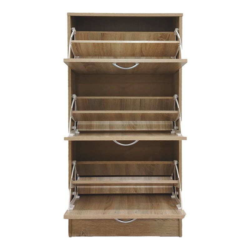 Αν ψάχνεις μια πρακτική παπουτσοθήκη που προσφέρει μια έξυπνη λύση για την οργάνωση των υποδημάτων σας ακόμη και σε περιορισμένους χώρους, η Savaz ειναι ακριβώς αυτό που ψάχνεις Διαθέτει τρία ανακλινόμενα ντουλάπια, καθένα σχεδιασμένο για την αποθήκευση παπουτσιών, διατηρώντας τα προστατευμένα από τη σκόνη και τακτοποιημένα. Οι διακριτικές μεταλλικές λαβές προσδίδουν μια μοντέρνα και μινιμαλιστική αισθητική. Η κατασκευή από ανθεκτικά υλικά εγγυάται σταθερότητα και μακροχρόνια χρήση.