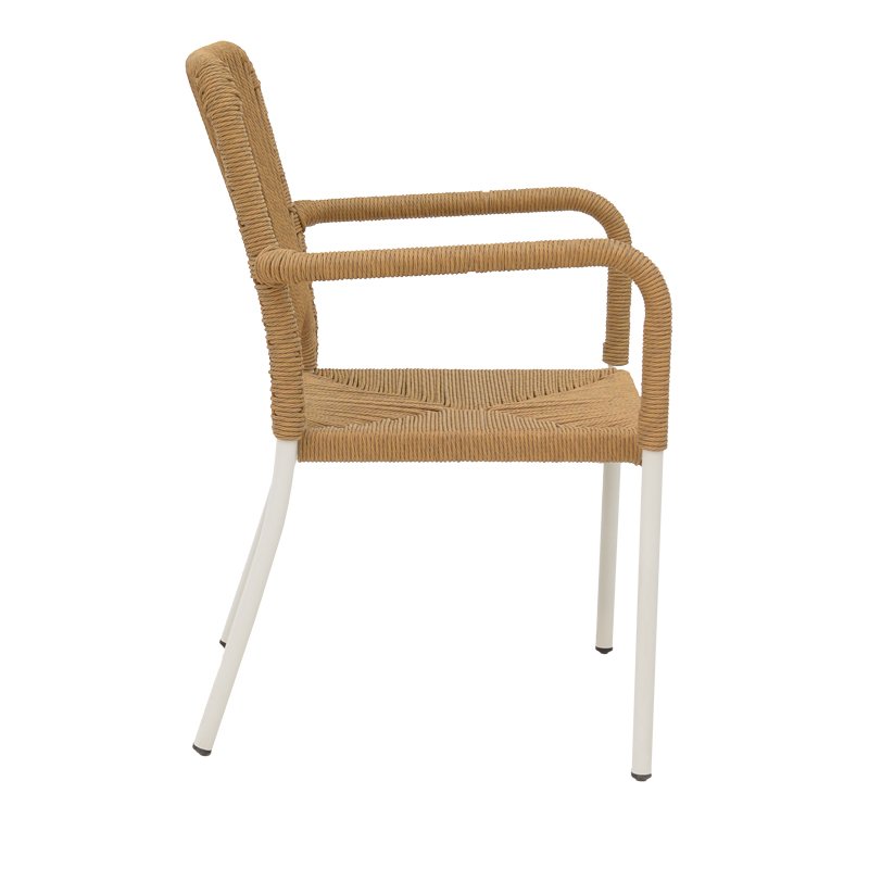 Πολυθρόνα αλουμινίου Norture pakoworld στοιβαζόμενη λευκός σκελετός-φυσικό rattan 57x61x85εκ
