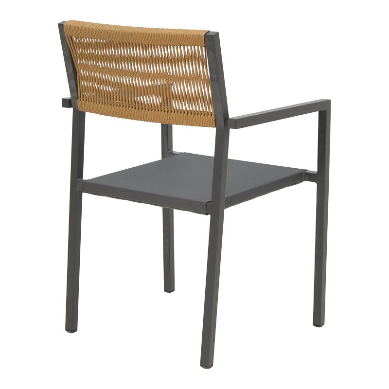 Πολυθρόνα αλουμινίου Savor pakoworld στοιβαζόμενη ανθρακί σκελετός-textilene φυσικό rattan 55x58x83εκ