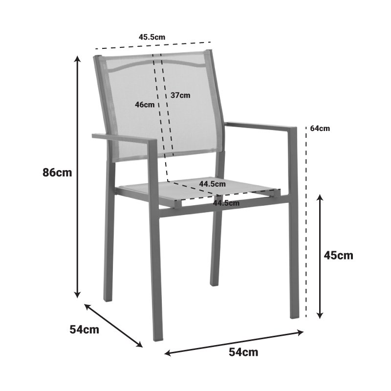 Πολυθρόνα Confidence pakoworld ανθρακί μέταλλο και γκρι textilene 54x54x86εκ