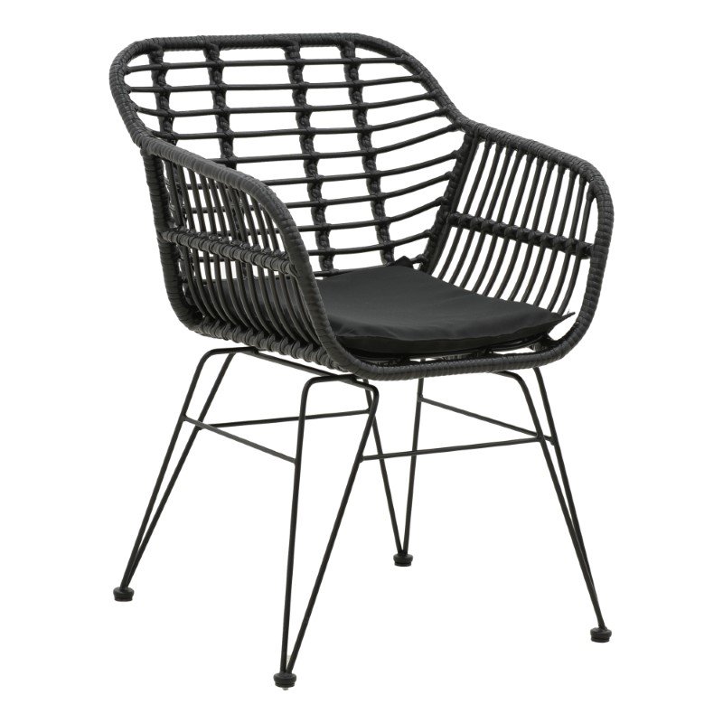 Πολυθρόνα κήπου Naoki pakoworld με μαξιλάρι pe μαύρο-μέταλλο μαύρο πόδι 55x58x79εκ