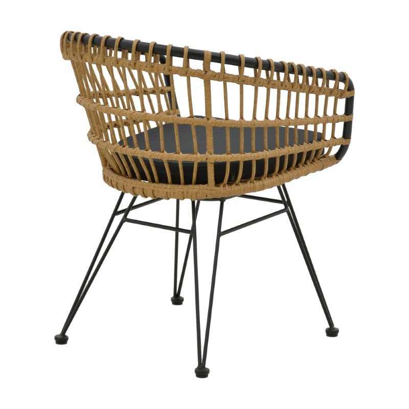 Πολυθρόνα Naoki pakoworld με μαξιλάρι pe φυσικό-μαύρο μέταλλο 62x62x70εκ
