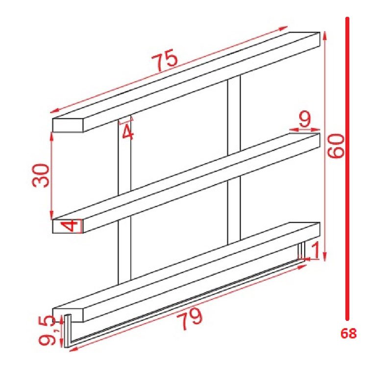 Ραφιέρα τοίχου Suny pakoworld μασίφ ξύλο πεύκου καρυδί-μαύρο 75x9x68εκ