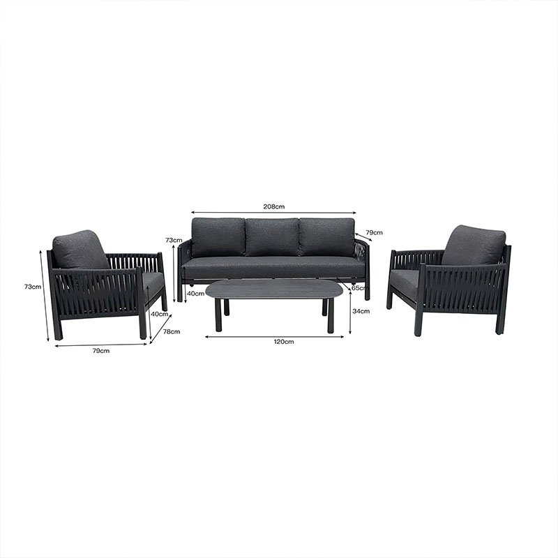 Σαλόνι εξωτερικού χώρου Feralda pakoworld ανθρακί αλουμίνιο-rope με ύφασμα σε ανθρακί απόχρωση