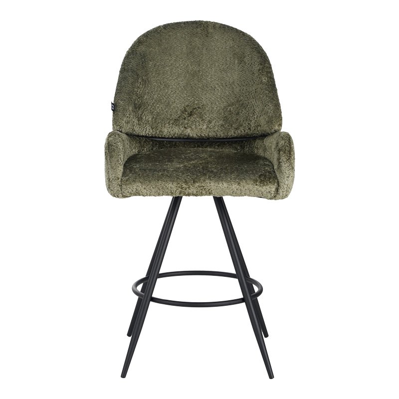 Σκαμπό μπαρ περιστρεφόμενο Morea pakoworld μπουκλέ ύφασμα σε λαδί απόχρωση με μαύρα μεταλλικά πόδια 55x66x107.5εκ