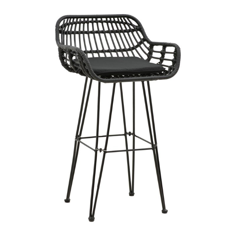 Σκαμπό μπαρ κήπου Naoki pakoworld με μαξιλάρι pe μαύρο-μέταλλο μαύρο πόδι 52x50x90εκ