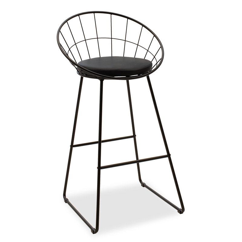 Σκαμπό μπαρ Seth pakoworld μεταλλικό μαύρο με μαξιλάρι PVC μαύρο