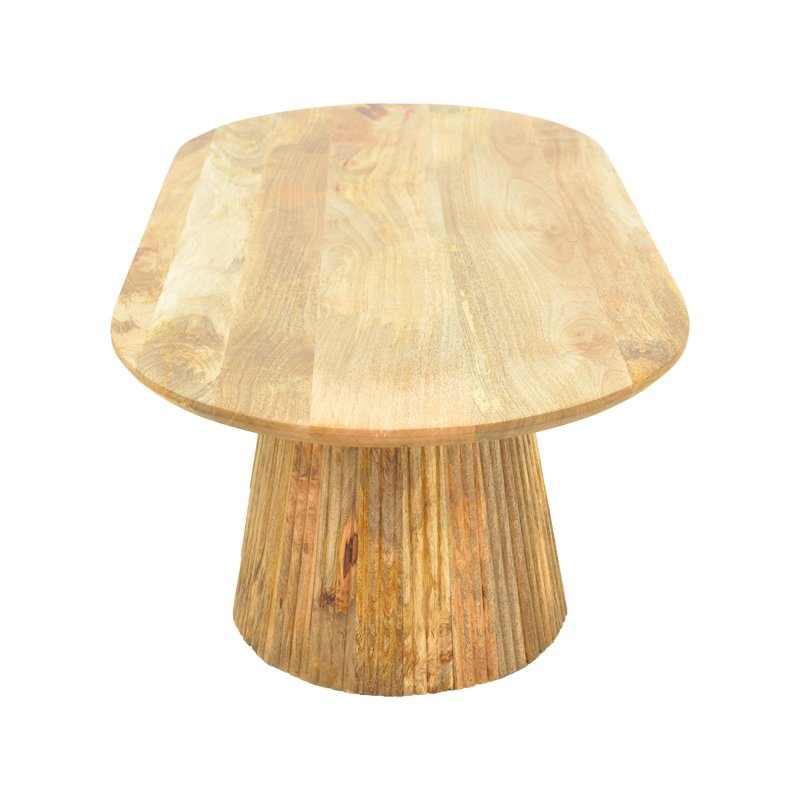Τραπεζάκι σαλονιού Aithra από μασίφ ξύλο mango με μοντέρνο σχεδιασμό και φυσική αισθητική. Η οβάλ επιφάνειά του αναδεικνύει τη φυσική υφή και τα νερά του ξύλου, προσδίδοντας ζεστασιά και κομψότητα στον χώρο.