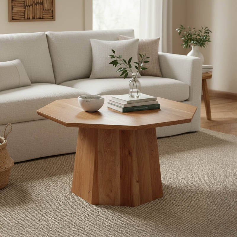 Αυτό το μοναδικό τραπέζι σαλονιού θα προσθέσει μια νότα ζεστασιάς και κομψότητας σε κάθε χώρο. Κατασκευασμένο από ξύλο ακακίας, διαθέτει ένα εντυπωσιακό οκτάγωνο σχήμα και μια επιφάνεια που αναδεικνύει την φυσική ομορφιά του ξύλου. Είναι ιδανικό για κάθε χώρο και ταιριάζει άψογα με κάθε διακόσμηση, ενώ ο σχεδιασμός του, το καθιστά , ένα πραγματικό έργο τέχνης.