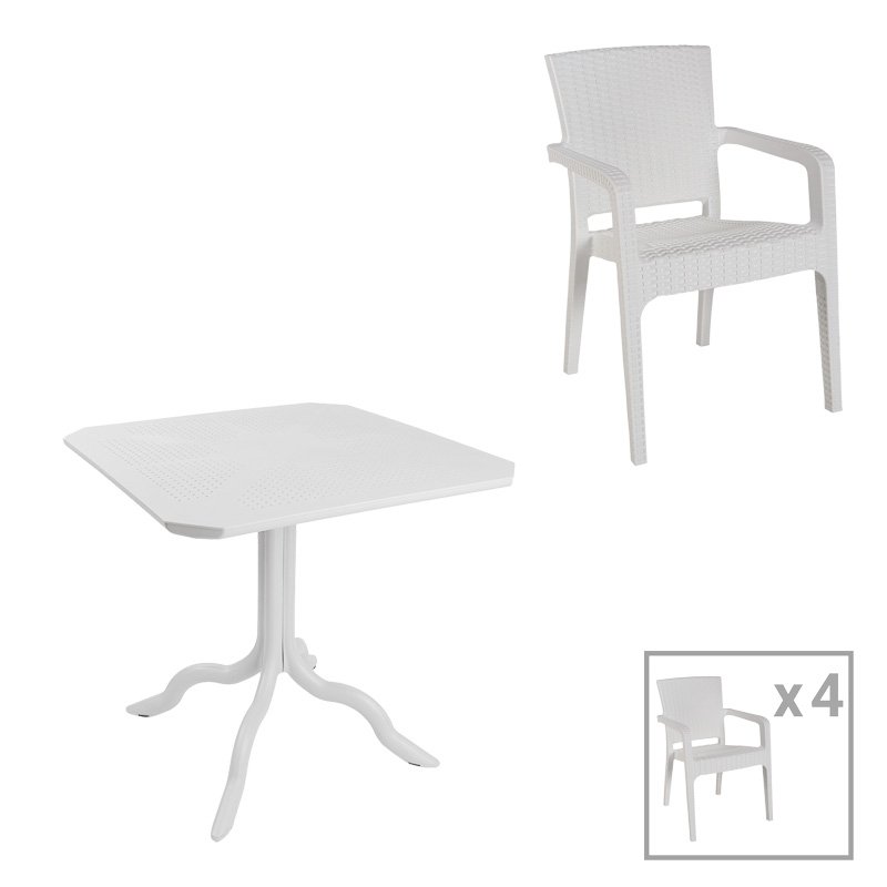 Τραπεζαρία Icon-Halcyon pakoworld σετ 5τεμ PP σε λευκή απόχρωση