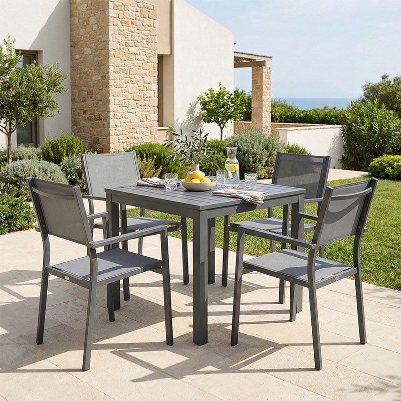 Τραπεζαρία Moly – Kliton Ι σετ 5τεμ pakoworld ανθρακί αλουμίνιο και textilene σε ανθρακί απόχρωση 80x80x74εκ
