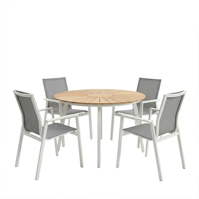 Τραπεζαρία Pinap-Dashiell σετ 5τεμ pakoworld λευκό αλουμίνιο και plywood σε φυσική απόχρωση Φ110×74εκ
