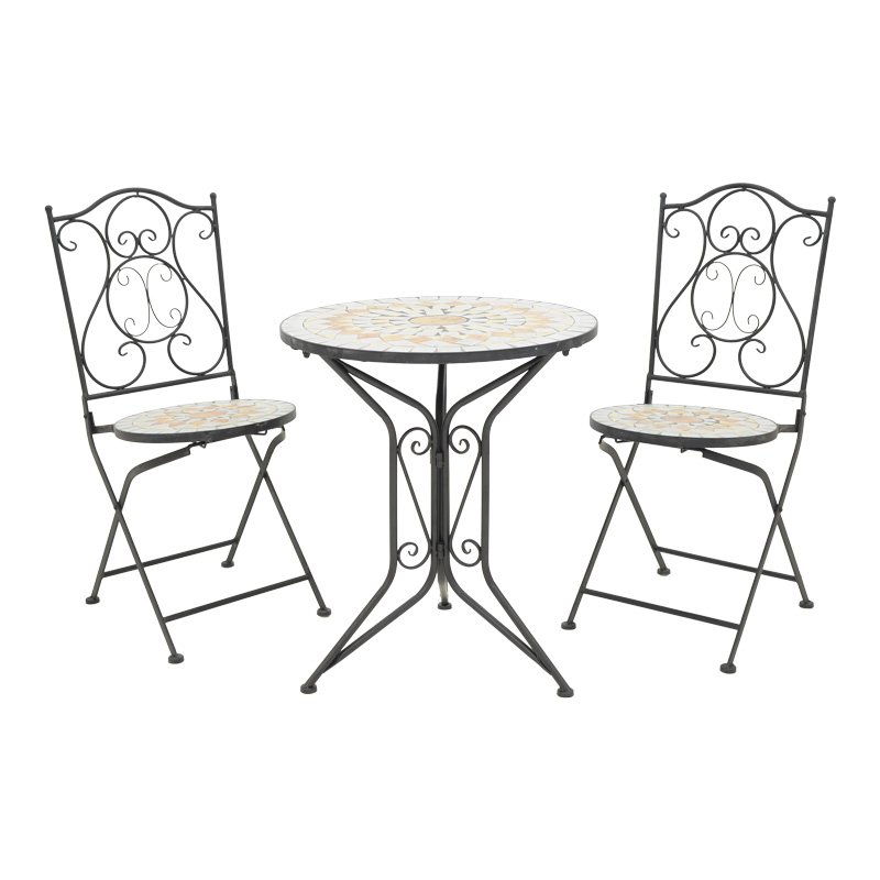 Τραπεζαρία Sellis pakoworld σετ 3τεμ μωσαικό-μέταλλο μαύρο