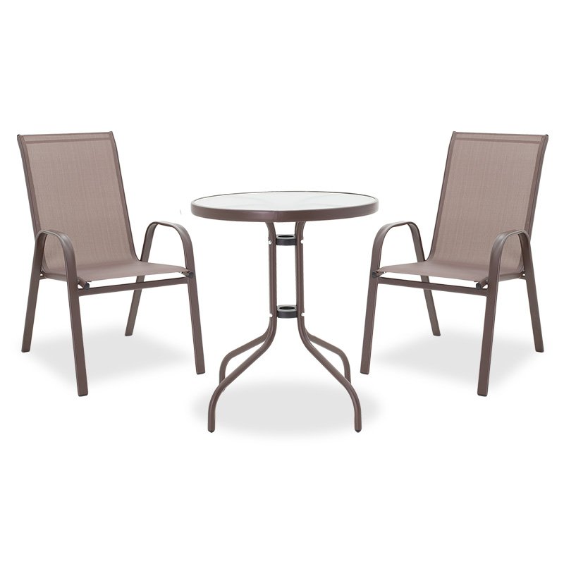 Τραπεζαρία Watson-Calan σετ 3τεμ pakoworld μέταλλο-textilene καφέ Φ60×70εκ