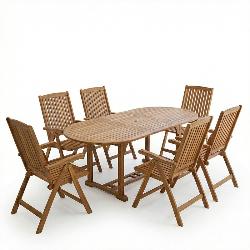 Τραπεζαρία Zerco-Sopho pakoworld σετ 7τεμ φυσικό μασίφ ξύλο ακακίας 200/150x100x75εκ